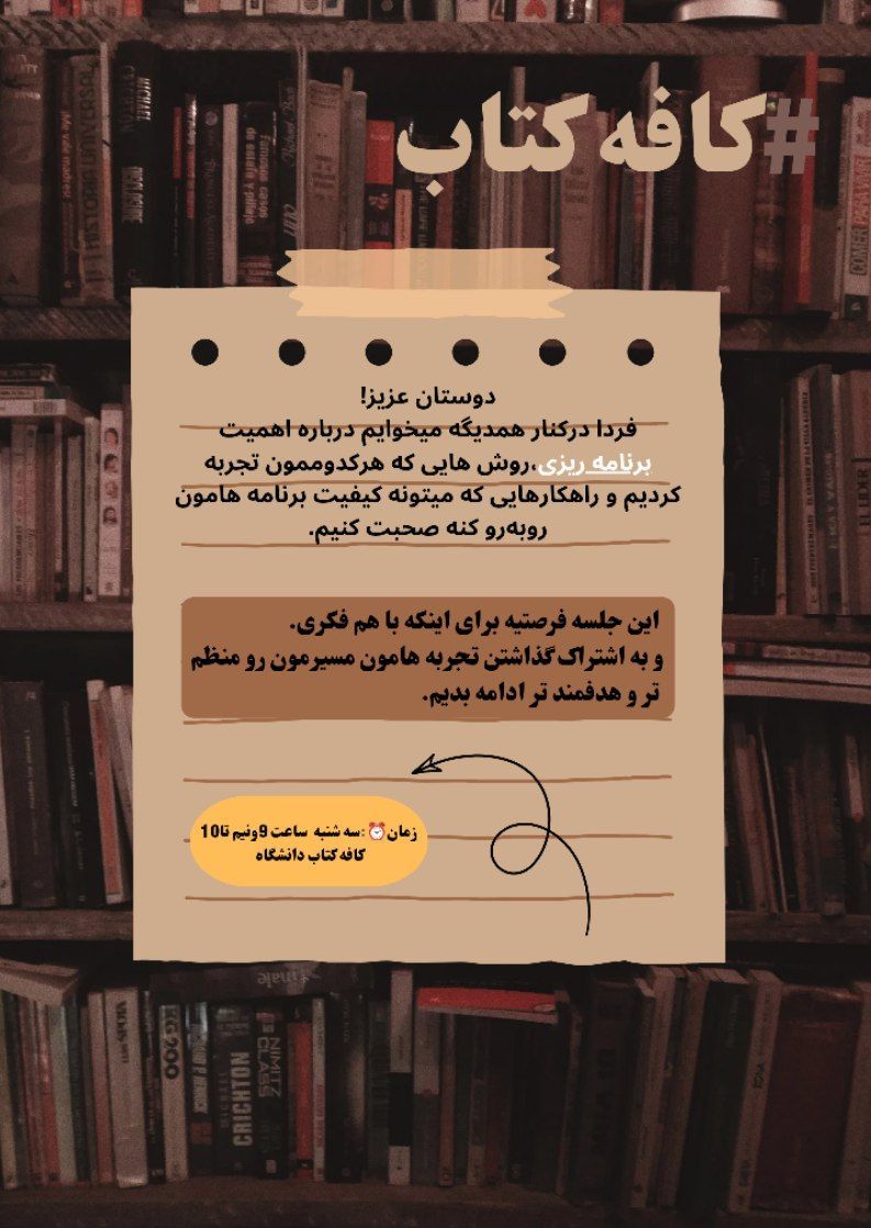 فردا در کنار هم میخواهیم دربارهی اهمیت برنامهریزی، روشهایی که هرکداممان تجربه کردیم، و راهکارهایی که میتواند کیفیت برنامههایمان را بهتر کند صحبت کنیم.