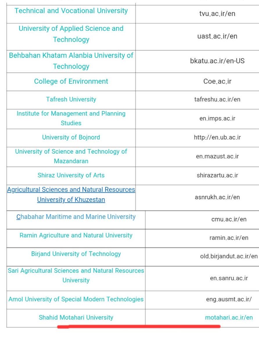 اضافه شدن نام دانشگاه شهید مطهری در فهرست انگلیسی مراکز علمی وزارت علوم، تحقیقات و فناوری