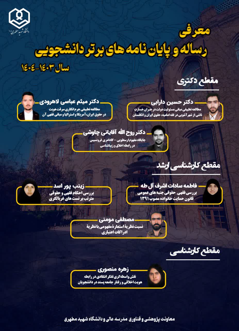 معرفی رساله‌ها و پایان‌نامه‌های برتر دانشجویی سال تحصیلی ۱۴۰۴-۱۴۰۳